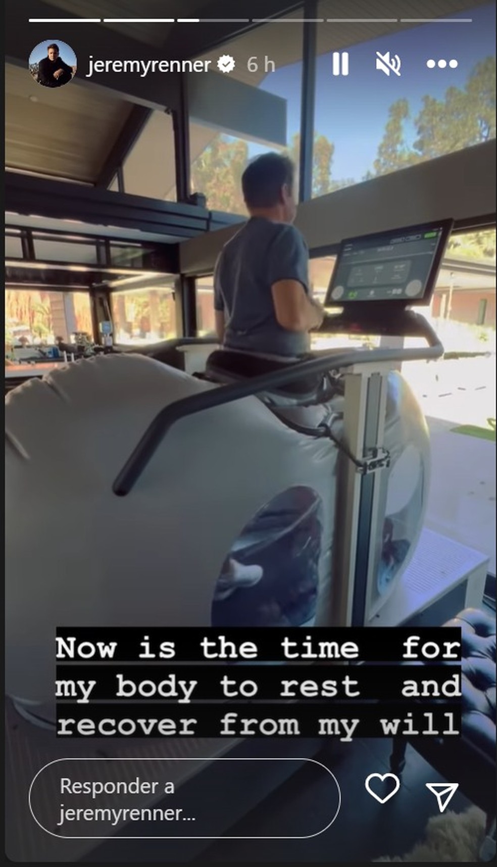 Jeremy passou por duas cirurgias e recentemente compartilhou uma foto de uma sessão de fisioterapia